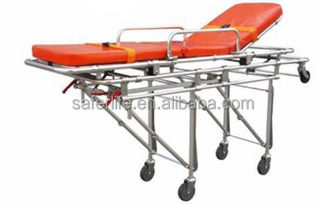 Using high quality aluminum alloy materials, matching pieces of aluminum alloy die casting. The sponge cushion, so that the wounded lying comfortable. Folding leg mechanical structure, through the left handle control. Only an ambulance crew put the patient on the ambulance.
