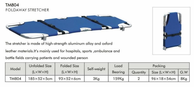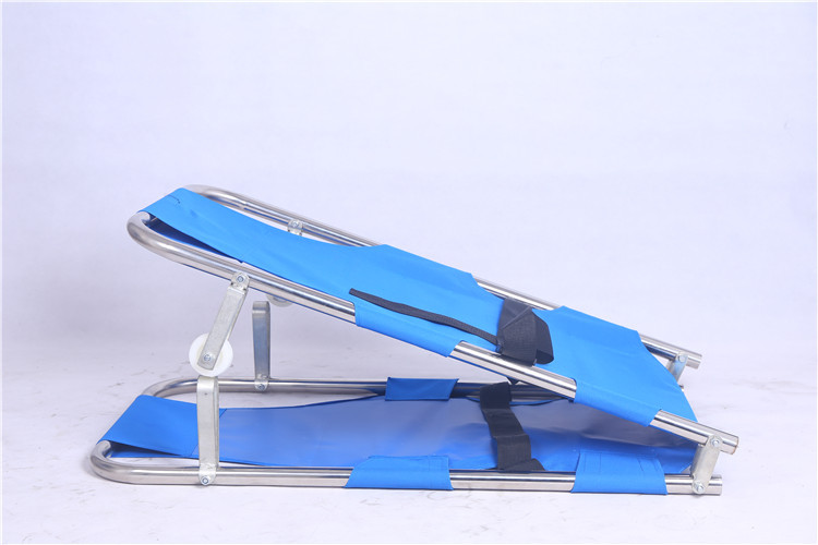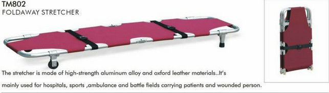 This stretcher with wheels, outriggers and can be folded. It is made of high strength aluminum alloy material . It has characterizes of light-weighted, small-sized, easy-carried, reliable quality, use-safely and easy for sterilization, etc. It is commonly used in hospital, gymnasium, ambulance, and battle fields to carry patients and wounded person.