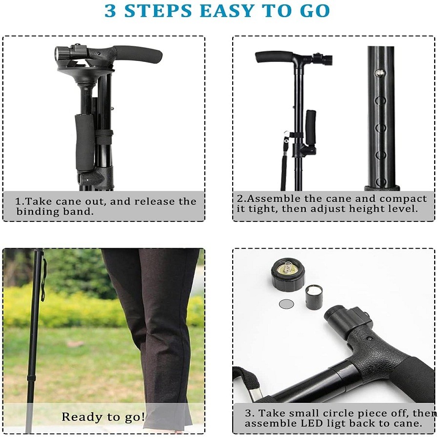 2016 wholesale folding cane free adjustable walking cane with LED light